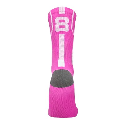 Mk Socks Player ID Jersey Number SINGLE Crew Sock - Hot Pink, White