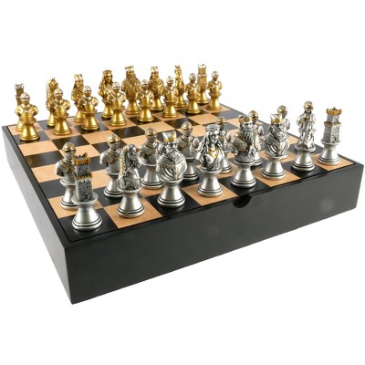 WorldWise Imports Chess Set - Camelot Gold & Silver Chessmen on Maple Chest