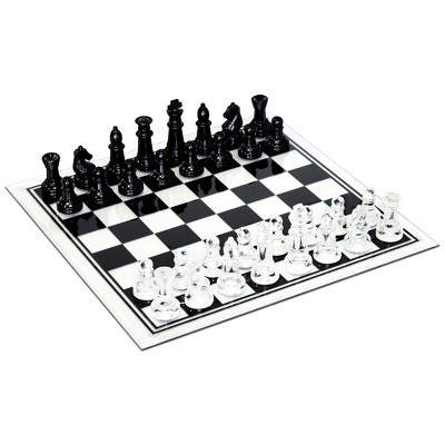 WE Games Black and Clear Glass Chess Set, 13.75 in. Board, 3 in. King
