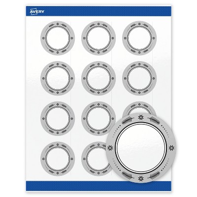Avery Labels, 2" Diameter, Silver-Metallic Black, Glossy, 120ct