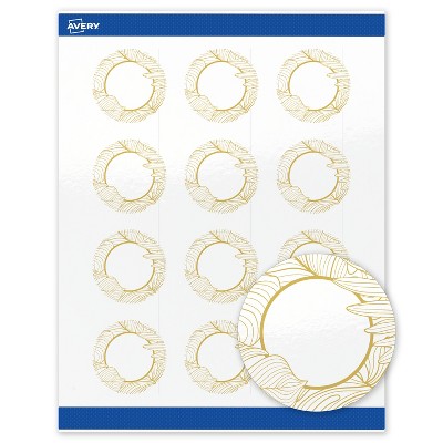 Avery Round Labels, 3", Flourish Gold Florals Design, Glossy