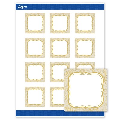 Avery Square Labels, 2" x 2", Flourish Gold Florals Design, Matte