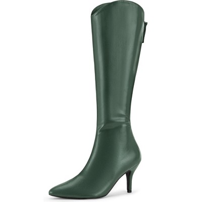 Allegra K Women's Shiny Pointed Toe Stiletto High Heels Knee High Sock Boots