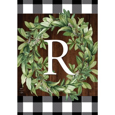 Wreath Monogram R Everyday Garden Flag 18" x 12.5" Briarwood Lane