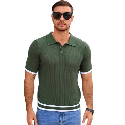Coolmee Men's Knit Polo Shirts Casual Short Sleeve Button Down Tops Crochet Golf Polo Collared Shirts