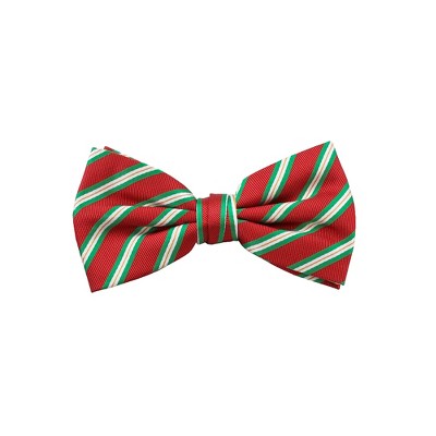 Jacob Alexander Men's Holiday Christmas Red with Diagonal Green & White Stripes Pre-Tied Clip-On Bow Tie