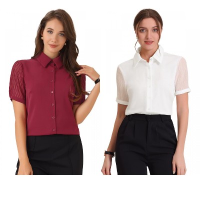 INSPIRE CHIC Women's Polka Dots Tie V Neck Flutter Cap Sleeve Blouse 2 Packs