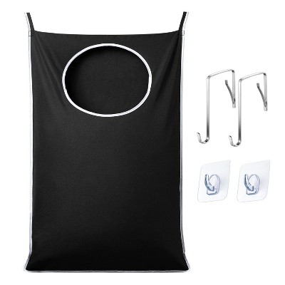 ULTIMEA Laundry Hamper, Vertical Laundry Basket with 2 Tiers Wooden Shelf and Hooks, Clothes Hamper with Pull-Out and Removable Bag for Bathroom