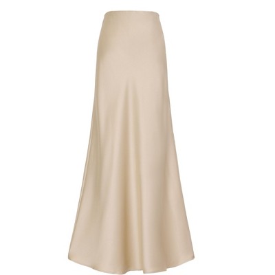 INSPIRE CHIC Women Satin Maxi Elastic High Waist Side Slit Flowy Long for Party Wedding Skirt