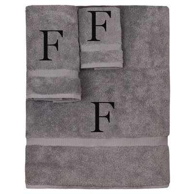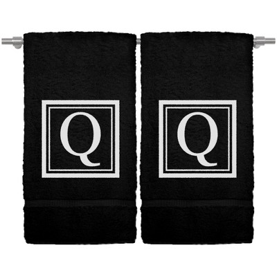 BC BARE COTTON Monogrammed Towel Set, Personalized Gift, Set of 3 - Black - White Block