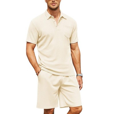 COOFANDY Mens Polo Shirt Textured Knit Button Casual Short Sleeve Summer Vacation Beach Stretchy Golf Shirts
