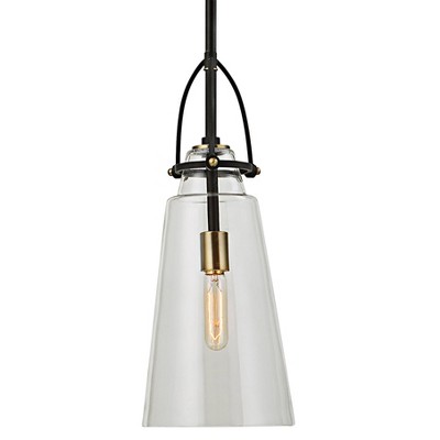 Uttermost Saugus 8" Wide Black and Brass Mini Pendant