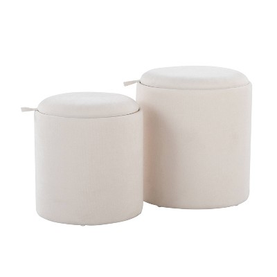 PAGED 2-Piece Upholstered Storage Ottoman Set Faux Fur Foot Stool with Reversible Lid and Metal Legs for Family Room, Bedroom