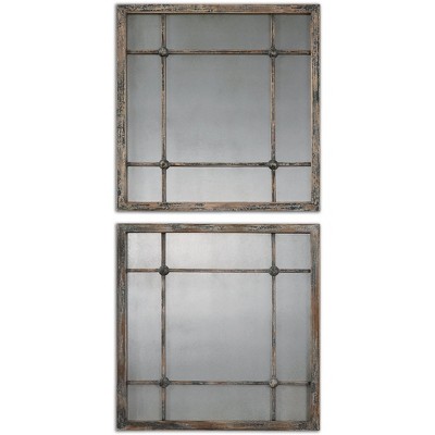 Uttermost Allick Antiqued Gold Leaf 18" Square Wall Mirror Set of 2