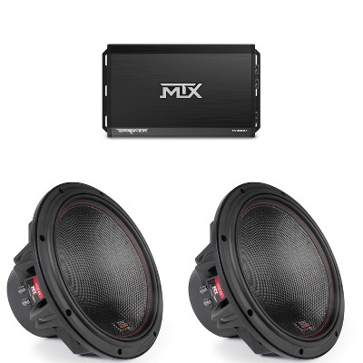 MTX TERMINATOR 1000-Watt RMS 1Ω Mono Block Class D Amplifier and Two MTX Audio 7512-44 75-Series 12" 750W RMS Dual 4-Ohm Subwoofer