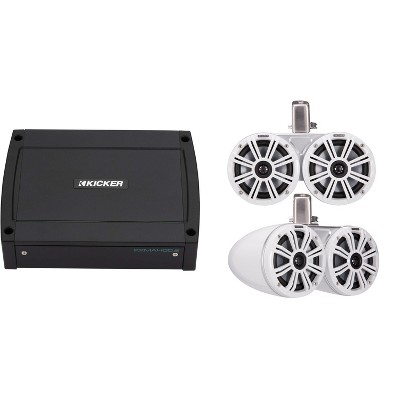 Kicker Marine 4 Ch Amp W/ 6.5" & 8" LED KMXL White Tower Speaker Audio Upgrade ( 48KXMA500.4,51KMTCXL65W, 51KMTCXL8W)