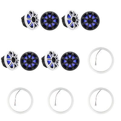 Kicker 45KM654L LED 6.5 Marine Coax with Charcoal and White Grills with a Pair of 50KLSR65 6.5 Led Lighted Speaker Ring