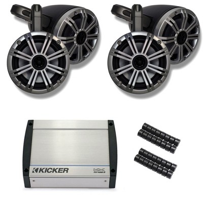 Kicker UTV Bundle: 40KXM4002 Amp & Four Silver Kicker KM 6.5s w/ Black KMTES Enclosures