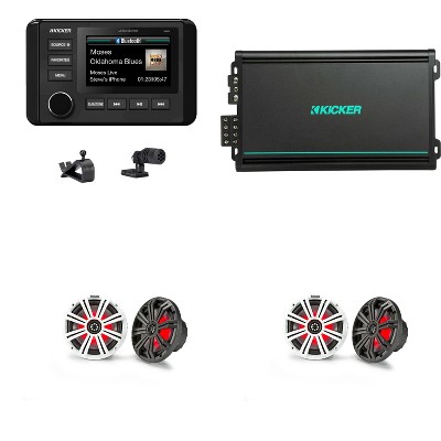 Kicker 51KMC4 Marine Source Unit & (2 Pair ) 45KM84L 8" RGB LED Marine Speakers with 48KMA6004 4 Ch. Marine Amp Bundle