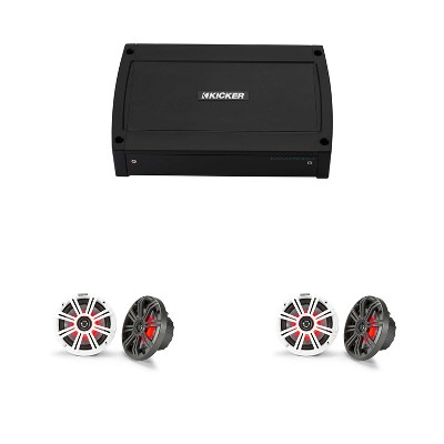 Kicker Marine 4 Ch Amp & (2 pair ) 6.5" LED Coaxial Speaker Audio Upgrade ( 48KXMA500.4, 45KM654L )