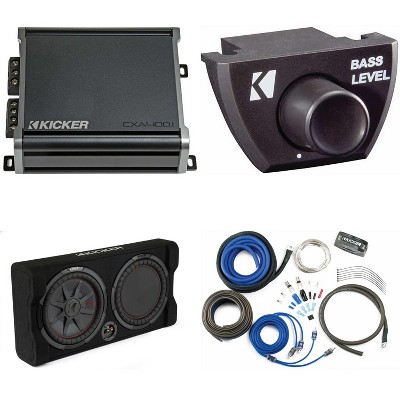 Kicker 48TRTP122 Comp RT 12" Subwoofer Enclosure Package + 46CXA4001 Amp, Bass Knob & CK8 Amp Install Kit Bundle