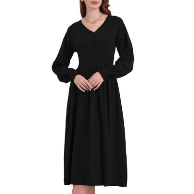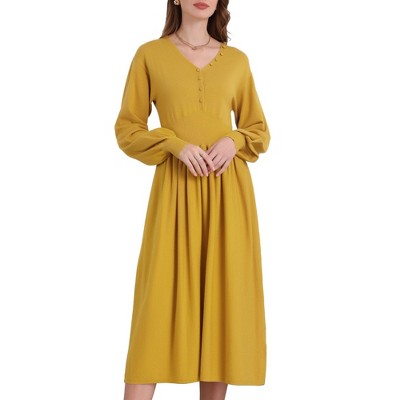 Coolmee Women's Summer Casual Dresses Puff Sleeve V-Neck A-line Flowy Midi Dress Evening Party Cocktail Dress