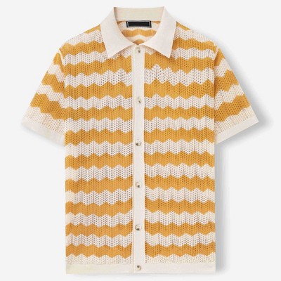 Men's Short Sleeve Knit Top with Hollow Jacquard Chevron Pattern