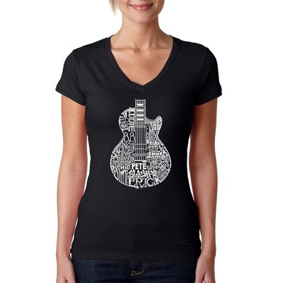 LA Pop Art Women's Word Art V-Neck T-Shirt - Rock Guitar Head