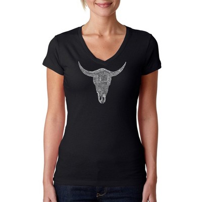 LA Pop Art Women's Word Art V-Neck T-Shirt - COUNTRY MUSIC'S ALL TIME HITS