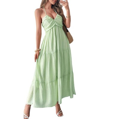 LA LEELA Women's House Daily Routine Evening Wear Vacation Flowy Dress Pencil Tube Top Maxi Frill Dress Evening Gown