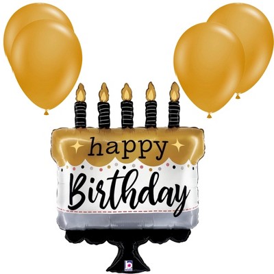 LoonBalloon 28 Inch Satin Metallic Cake Birthday Balloon with 4 latex balloons- Festive & Fun