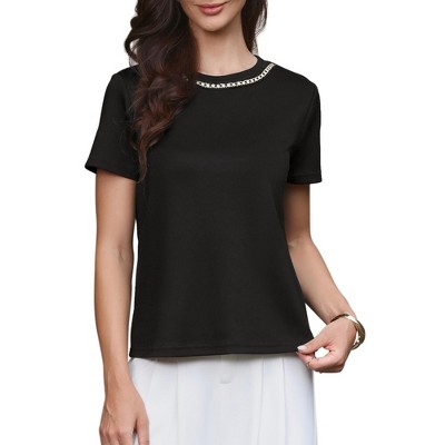 INSPIRE CHIC Women's Short Sleeve Crew Neck Line Decor Lightweight Stretchy Summer Blouses