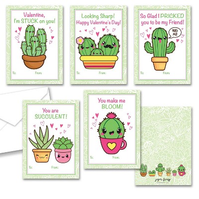 Paper Frenzy Succulent Themed Valentines - 25 pack WITH ENVELOPES