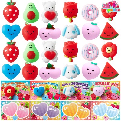 Joyfy 28Pcs/36Pcs Squishies Toys with Valentines Day Cards for Kids-Classroom Exchange Gifts