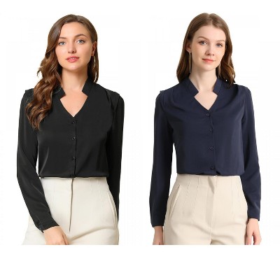 INSPIRE CHIC Women's Elegant V Neck Work Office Button Up Shirt 2 Packs