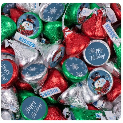 124 Pcs Christmas Candy Chocolate Party Favors Hershey's Miniatures & Red, Green & Silver Kisses (1.5 lbs, Approx. 124 Pcs) - Jolly Snowman
