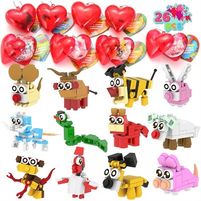 Joyfy 24/26 Packs Valentines Day Cards with Animal Building Blocks for Valentine Party Favor, Kids Classroom Exchange Gift, Valentine’s Greeting Cards