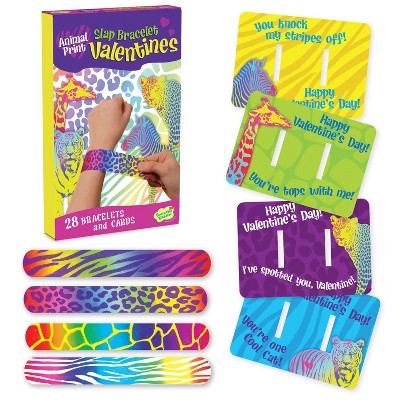 Peaceable Kingdom Valentines Cards for Kids Classroom - Set of 28 Valentines Day Gifts - Animal Print Slap Bracelets