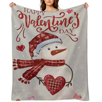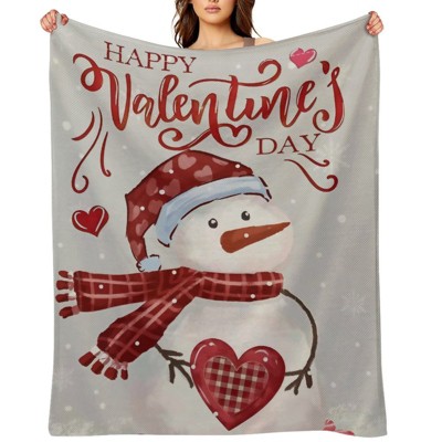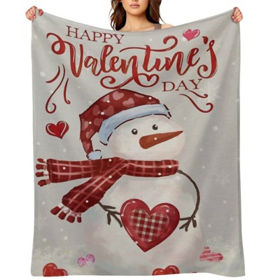 Valentine's Day Fleece Blanket Ultra Soft Anti-Pilling Snowman Plaid Heart Happy Valentine's Day Print for Couch Bed 50x60 inches