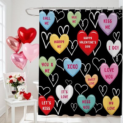 Lomsoe 1pc Valentines Shower Curtain Sweet Heart Valentine's Day Decor Pink Heart Shower Curtain Waterproof with Hooks.