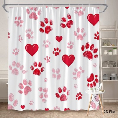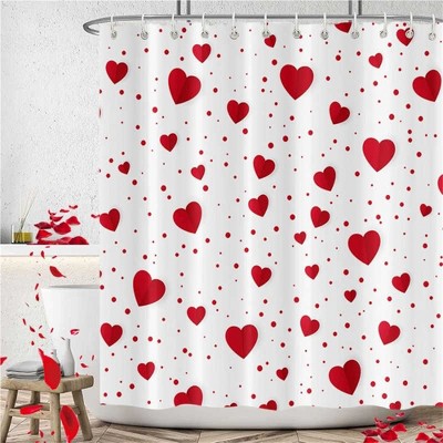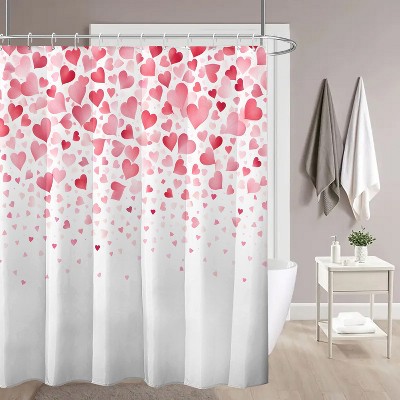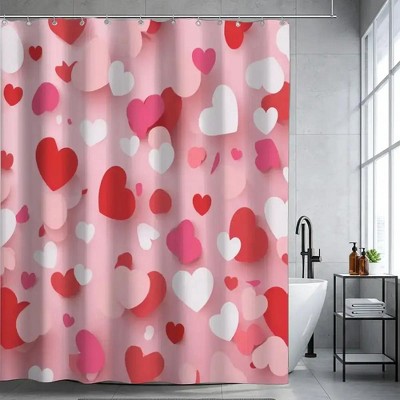 Lomsoe 1pc Valentine's Day Themed Shower Curtain,Pink and Red Heart Print Polyester Fabric with Hooks,Perfect for Bathroom.
