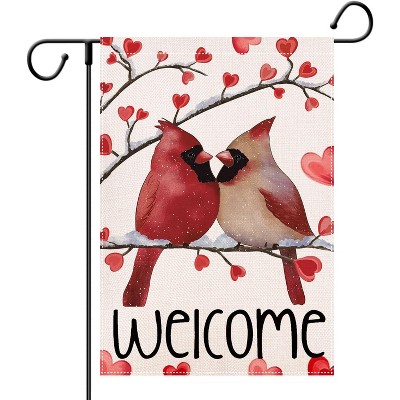 Valentine Garden Flag for Outside 12x18 Single Sided, Valentines Day Birds Yard Flag