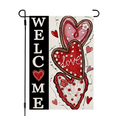 Valentines Day Garden Flag Love Heart 12x18 Inch Single Sided Red Welcome Decoration for Outside Yard