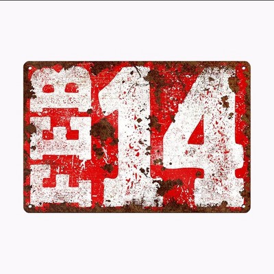 Lomsoe Funny Valentine's Day Metal Sign FEB 14 Red Tin Sign Red Wall Art Decor Welcome Holiday Decor Valentine's Day Gift 8x12 Inch