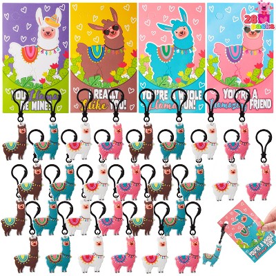 Joyfy 28 PACK Valentines Day Gifts for Kids Cartoon Cards with Llama Keychains, Valentine's Greeting Cards for Classroom Exchange Gifts