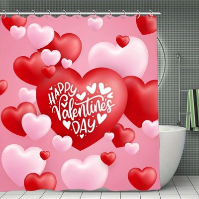 Happy Valentine's Day 3D Hearts Shower Curtain - Waterproof Polyester, Soft & Durable, Privacy Protection 70.8x70.8Inch