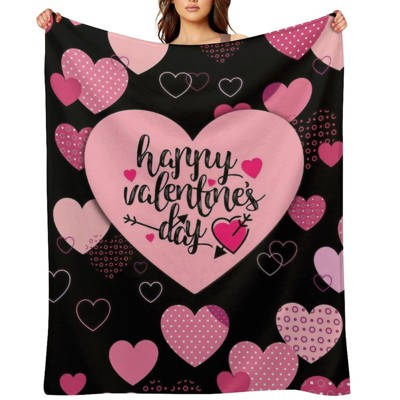 Black & Pink Heart Valentine's Day Throw, Soft Flannel, Anti-Pilling, Ideal for Movie Nights, Travel & Gifting 40x50 inches