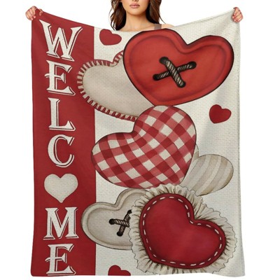 Valentine's Day Patchwork Hearts Welcome Throw Blanket - Ultra Soft, Anti-Pilling for Bed & Couch 50x60 inches