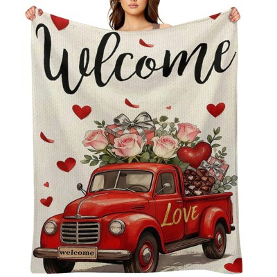 Valentine's Day Red Truck Rose Welcome Throw Blanket - Ultra Soft, Anti-Pilling for Couch & Travel 50x60 inches