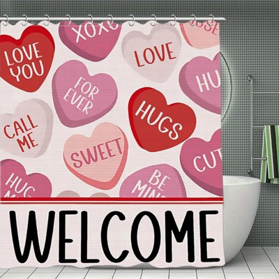 Valentine's Day Candy Heart Welcome Shower Curtain - High-Density Polyester, Soft, Waterproof, Easy to Clean, Bathroom Decor 70.8x70.8Inch